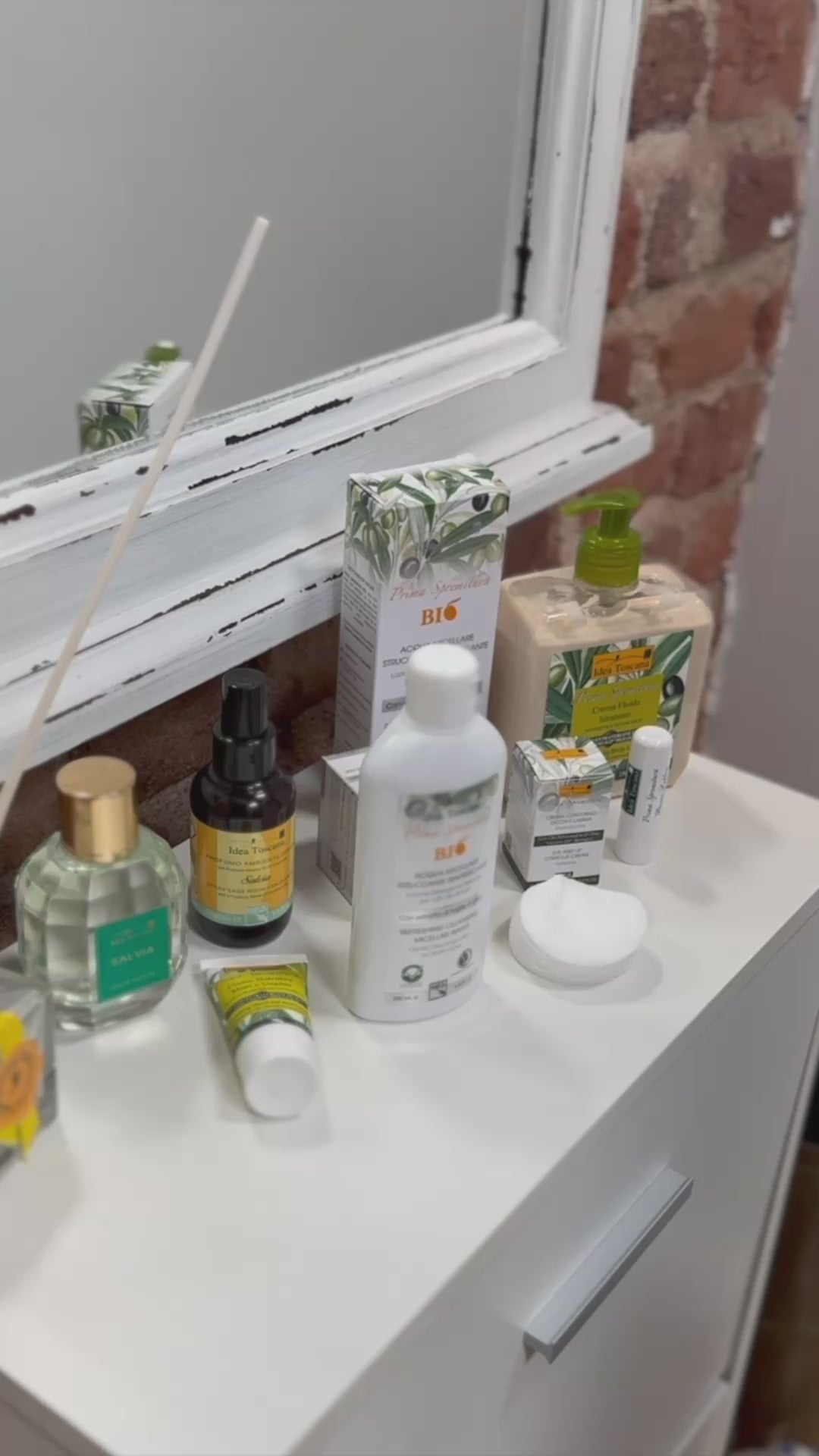 Idea Toscana has created the cosmetic line Prima Spremitura , which for the first time uses Organic Tuscan Extra Virgin Olive Oil with Protected Geographical Indication , which hides the cosmetic secrets and benefits of the Tuscan tradition. Prima Spremitura means "first press". And the cosmetic line is named so because it uses olive oil from the first pressing of the olives, in order to preserve their most beneficial ingredients and properties. An absolute gift from nature.