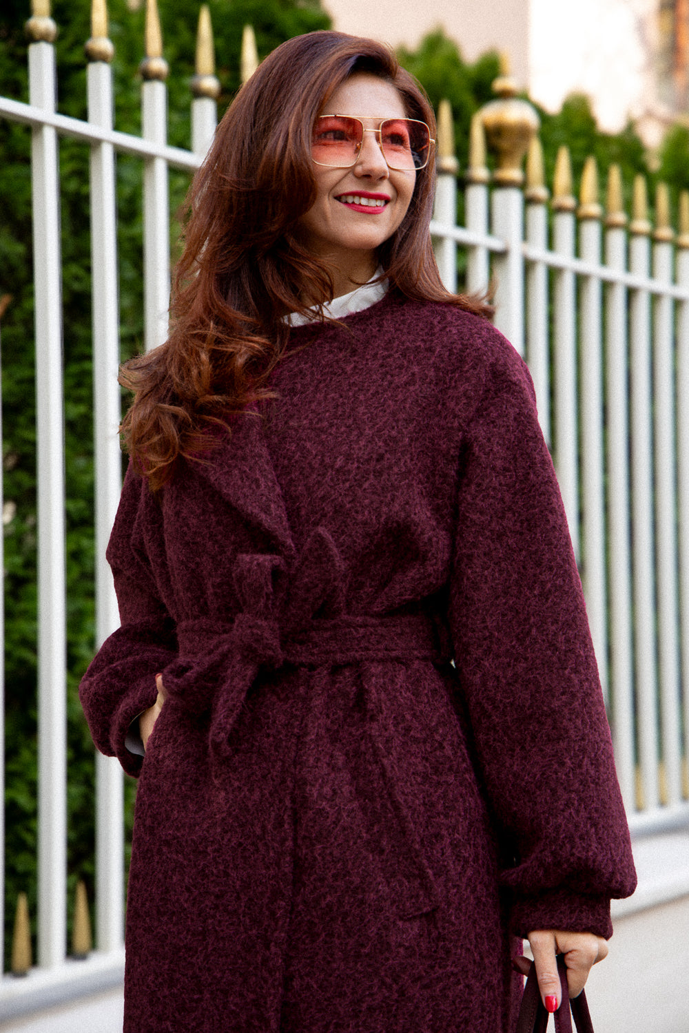 Прекрасно зимно палто в невероятна непреходна кройка и стил. Обло деколте, разкошен буфан ръкав, закопчаване със скрити тик-так копчета, колан, за да оформи талията и даде нужната линия. Джобове. Класа, стил и вечна неподчинена на трендове изтънченост. Прекрасен хастар в същия цвят. Топло, меко, уютно!