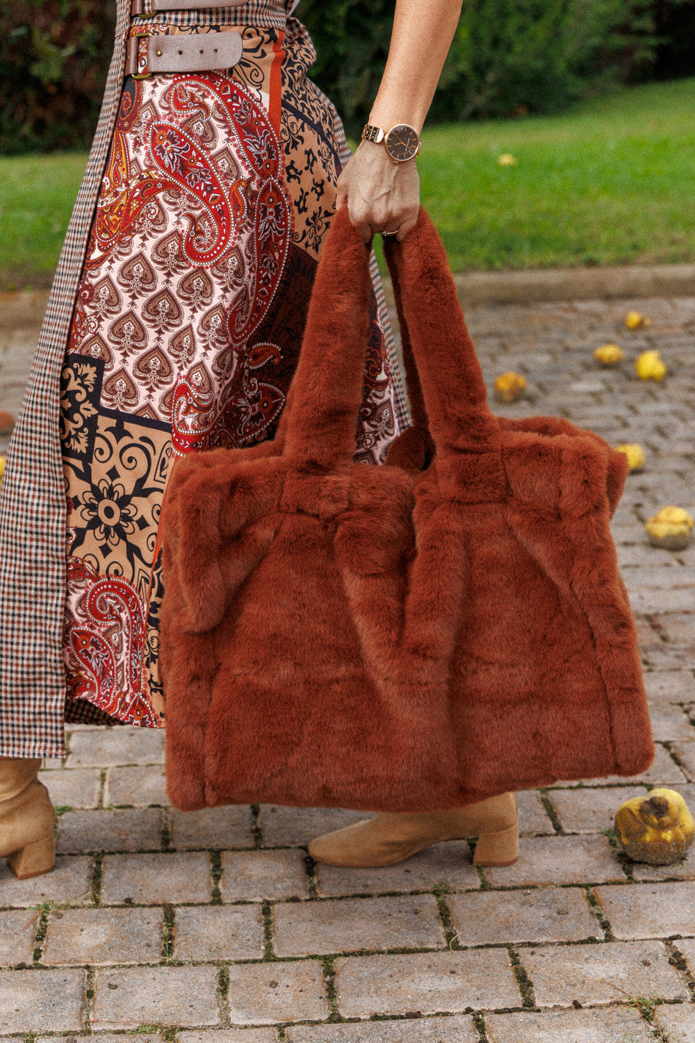 В офиса я наричаме Мечо :) Сууупер готина, удобна за града, за път, работа и още, и още... Къси, но и достатъчно дълги дръжки, за да е удобна и практична, хастар, вътрешен джоб с цип. Без преграда. Дъно с кора за по-голямо удобство. Закопчаване с тик-так копче в горната част. Изключително меко и приятно покритие от еко косъм, което прави чантата абсолютен фаворит. Наистина чудесно и супер готино предложение, което ще носиш с истинско удоволствие и наслада, сигурни сме. Лимитирана серия.