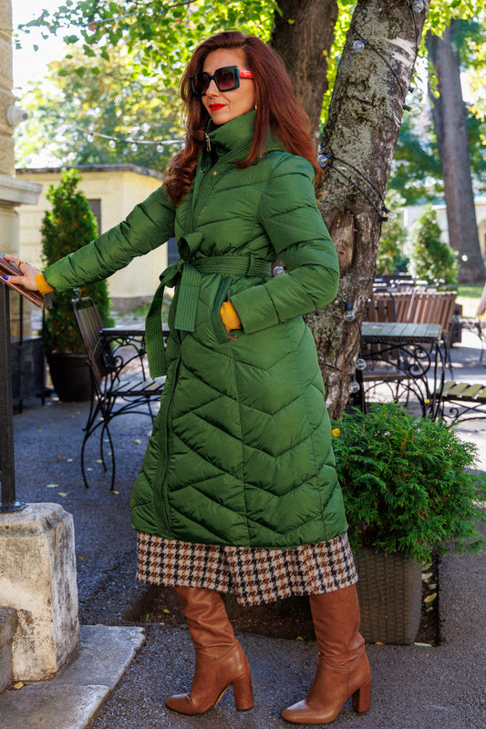 Jachetă matlasată grozavă de iarnă, cu o lungime perfectă pentru zilele reci, într-o culoare minunată. Înveliș incredibil, cu o nuanță deschisă de cameleon perlat, o adevărată plăcere la atingere. Glugă frumoasă și spectaculoasă, fermoar dublu metalic în față, nasturi tic-tac ascunși, buzunare laterale cu fermoar și clapă. Mâneci cu elastic interior. Guler înalt, căptușeală. Lucrare și design deosebite, croială clasică și aspect elegant. Potrivită pentru toate scopurile.