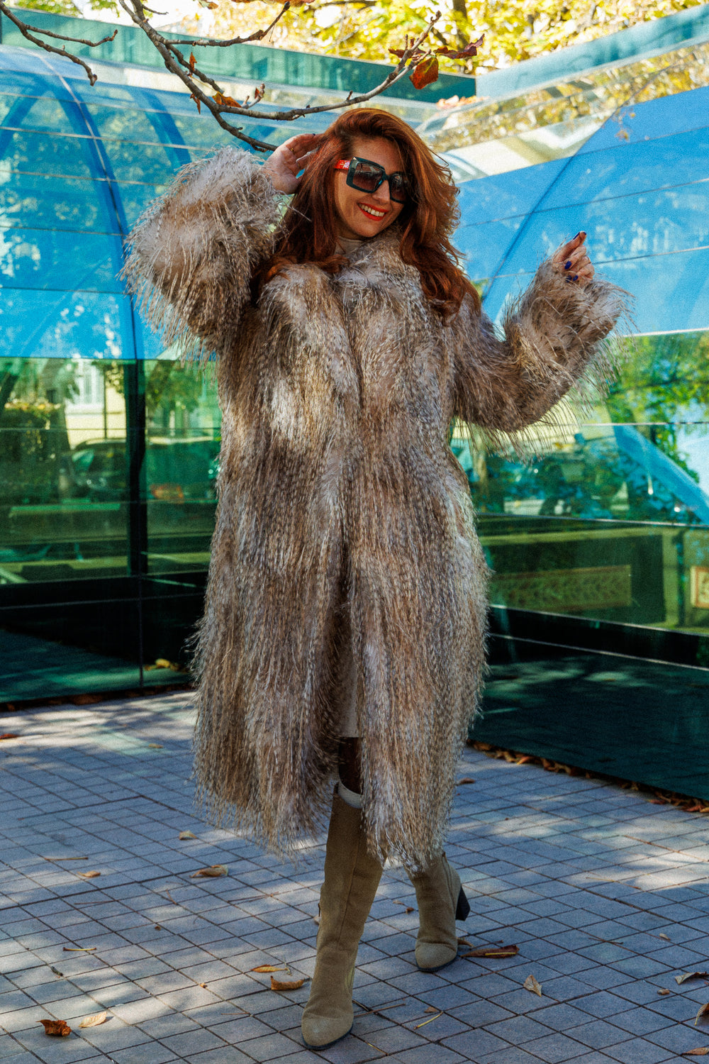 Aceasta nu este doar o haină... nu este. Este o experiență, o emoție, o bucurie, o strălucire, un stil, o clasă, încredere, pasiune, o dorință... O haină incredibilă, confecționată din blană ecologică lungă, unică, care îți va schimba gândirea și percepția asupra zilelor de iarnă. Nu acele luni gri, reci și plictisitoare ale anului, ci diferită, proaspătă, frumoasă, aprinsă. Te vei simți mai mult decât bine în ea - cu sau fără ocazie. Guler înalt, nasture tic-tac în față. Buzunarele laterale preferate. Husă drăguță din blană ecologică, căptușeală superbă cu perle și lungime excelentă. Lucrare și design minunate, o specie rară :) Pur și simplu o îmbraci și te cufunzi în ea... decât să vă urăm un timp plăcut împreună, nu avem nimic altceva de făcut :)